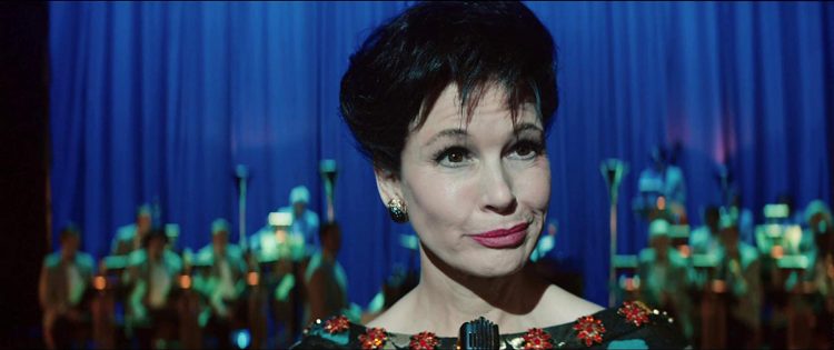 Ik denk het wel. Ik ben vertrouwd met werken in een theater en op een podium, ik hoefde er niet veel aan te denken, maar waarschijnlijk wel in functie van hoe een artiest op de planken zo’n nummer opbouwt. Als je het dan met de camera wil vatten, gebeurt het heel anders dan de manier waarop je het gewoon op een podium voor een publiek wil laten overkomen. Na mijn hele leven met artiesten en zangers te hebben doorgebracht, ben ik vertrouwd met hun wereld achter de schermen, zoals wanneer ze van achter de coulissen opkomen, de kleedkamer, wanneer ze aankomen in het theater, vertrekken uit het theater, in hotels verblijven, wanneer ze zich zorgen maken over hun stem, de adrenaline-opstoot eens ze op het podium staan, de angst of de depressie na een optreden… En dat is ook mijn favoriete fragment in de film, wanneer je Renée op magistrale manier een song ziet brengen, en nadien komt zij enkel nog in beeld, en pfff. Ik heb daar iets van Laurence Olivier gebruikt, uit een verhaal dat hij eens vertelde over een acteur die een ongelooflijke vertolking had gegeven, en toen hij backstage kwam zei iedereen, ‘Dat was geweldig!’ Toen zei de man, ‘What if I can’t do it again?‘ Dat zit ook in de film, en Renée speelt dat briljant. Ik denk dat het ook geldt voor Judy Garland, en misschien voor het theater in het algemeen. Als je in het theater een knop aan en uit zou kunnen zetten, wordt het leven veel gemakkelijker, maar je zou niet diezelfde grote performer zijn. Het mysterie is dat je sommige avonden het publiek raakt en andere avonden totaal de mist ingaat, je weet nooit wanneer of waarom het de ene avond werkt en de andere niet. Het hoort erbij, denk ik. Dus mijn achtergrond van met acteurs op de planken te werken heeft mogelijk geholpen of bijgedragen aan de gevoeligheden van de film, zodat het niet beperkt bleef tot enkel het filmen van Renée’s muzikale nummers in de nachtclub.