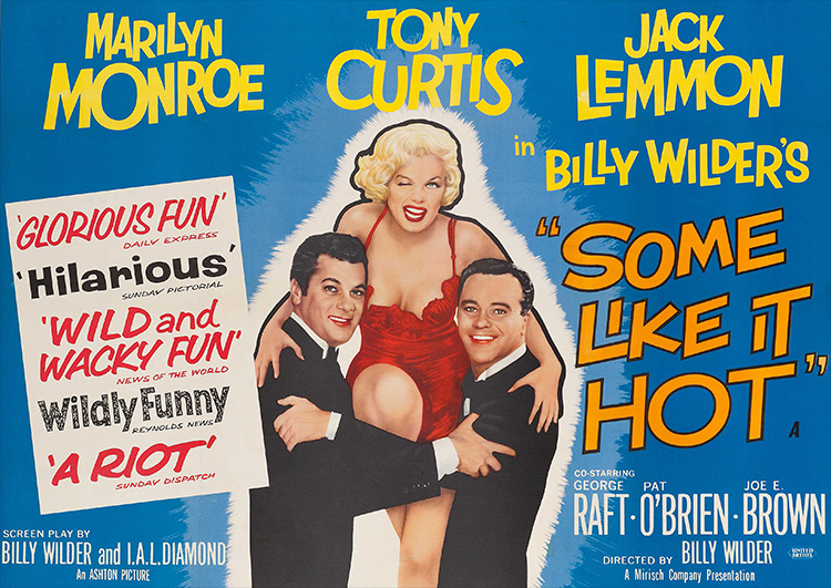 SOME LIKE IT HOT (1959) DIR – PROD Billy Wilder SCR Billy Wilder, I.A.L. Diamond CAM Charles Lang Jr. MUS Adolph Deutsch ED Arthur P. Schmidt CAST Marilyn Monroe (Sugar Kane Kowalczyk), Tony Curtis (Joe/Josephine), Jack Lemmon (Jerry/Daphne), George Raft (Spats Colombo), Joe E. Brown (Osgood Fielding III), Pat O’Brien (Detective Mulligan), Joan Shawlee (Sweet Sue), George E. Stone (Toothpick Charlie), Edward G. Robinson Jr. (Johnny Paradise)
