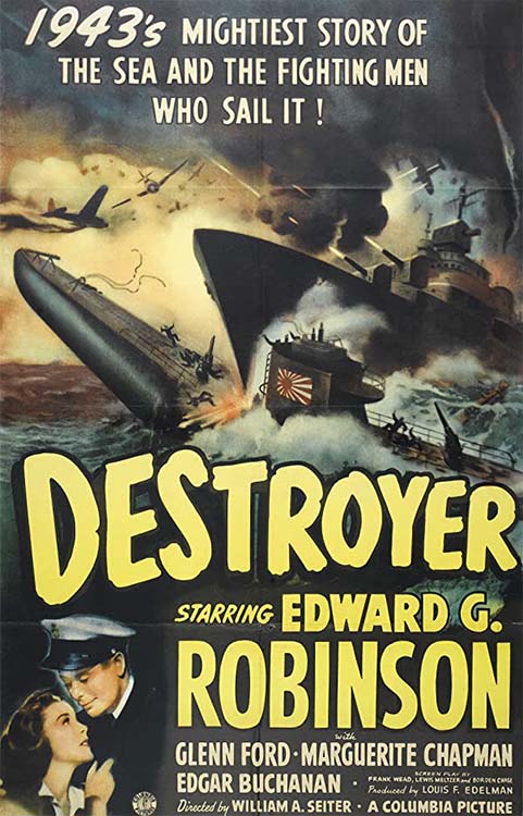 DESTROYER (1943) DIR William A. Seiter PROD Louis F. Edelman SCR Frank Wead, Lewis Meltzer, Borden Chase (verhaal van Frank Wead) CAST Edward G. Robinson, Glenn Ford (Mickey Donohue), Marguerite Chapman, Edgar Buchanan, Leo Gorcey, Regis Toomey