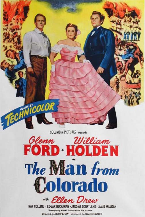 THE MAN FROM COLORADO (1948) DIR Henry Levin PROD Jules Schermer SCR Robert D. Andrews, Ben Maddow (verhaal van Borden Chase) CAST Glenn Ford (Owen Devereaux), William Holden, Ellen Drew, Ray Collins, Edgar Buchanan