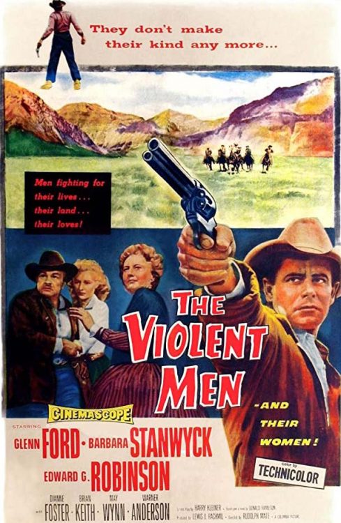 THE VIOLENT MEN (1955) DIR Rudolph Maté PROD Lewis J. Rachmil SCR Harry Kleiner (boek van Donald Hamilton) CAST Glenn Ford (John Parrish), Barbara Stanwyck, Edward G. Robinson, Dianne Foster, Brian Keith, May Wynn