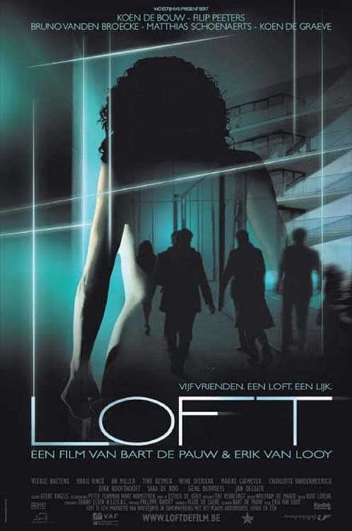 LOFT (2008) DIR Erik Van Looy PROD Hilde De Laere SCR Bart De Pauw CAM Danny Elsen ED Philippe Ravoet MUS Wolfram de Marco CAST Koen De Bouw, Filip Peeters, Bruno Vanden Broecke, Mattias Schoenaerts, Koen De Graeve, Veerle Baetens, Tine Reymer, Ann Miller, Charlotte Vandermeersch, Wine Dierickx, Maaike Cafmeyer, Marie Vinck, Jan Decleir, Gène Bervoets (Burgemeester Van Esbroeck), Sara de Roo, Dirk Roofthooft, Laura Verlinden, Ruth Beeckmans