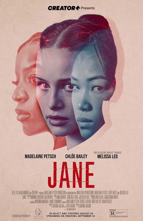 JANE (2022) DIR Sabrina Jaglom PROD Madelaine Petsch, Nick Phillips, Deborah Liebling SCR Sabrina Jaglom, Rishi Rajani CAM Diana Matos ED Shelby Hall MUS Anna Drubich CAST Madelaine Petsch, Chlöe Bailey, Melissa Leo, Nina Bloomgarden, Kerri Medders, Grayson Berry, Jordyn Arora Aquino, Calhoun Koenig, Chloe Yu, Victoria Foyt