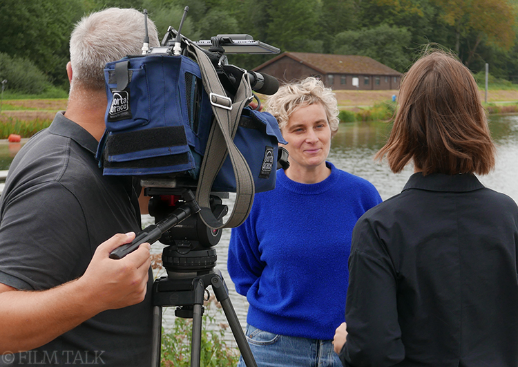 Ik vind acteren voor de camera altijd heel spannend en ik doe het enorm graag. In theater zit je gemakkelijk in een flow en een concentratie van een voorstelling die een hele avond duurt en je bent zelf het medium. Op een filmset gebeurt er zoveel rondom je en word je gemakkelijk afgeleid, terwijl je altijd je focus moet behouden. Dat maakt het heel spannend en is dus anders dan bij toneel, maar ik beleef hier heel veel plezier. Wanneer het aan jou is en de camera staat op jou gericht, dat is enorm boeiend, hé. Wat wij hier nu doen aan het water—ook al is het een klein onderdeel van de film—neemt natuurlijk wel iets meer tijd in beslag. Als je iets opnieuw moet doen, moeten alle boten terug naar hun beginpositie. Dat duurt wel even. En tijd is net wat heel kostbaar is bij een film.