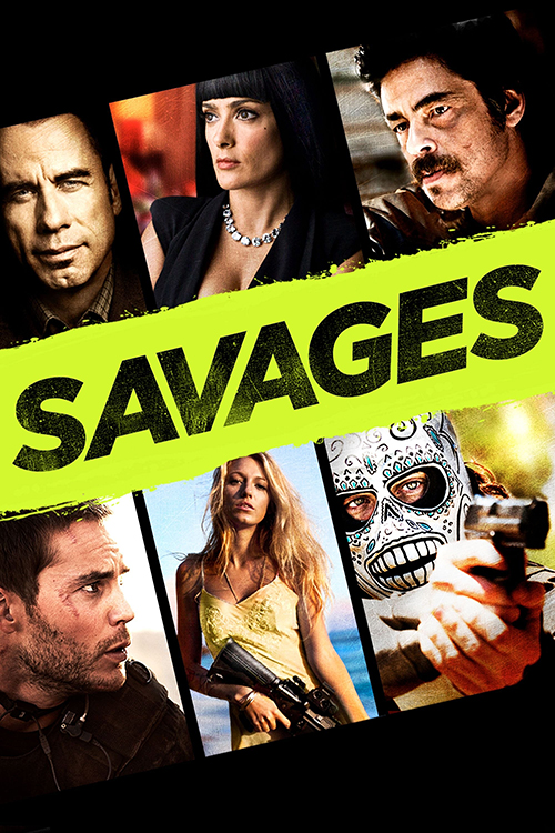 SAVAGES (2012) DIR Oliver Stone PROD Moritz Borman, Eric Kopeloff SCR Oliver Stone, Don Winslow, Shane Salerno (boek “Savages” [2010] van Don Winslow) CAM Dan Mindel ED Joe Hutshing, Stuart Levy, Alex Márquez MUS Adam Peters CAST John Travolta, Salma Hayek, Benicio Del Toro, Emile Hirsch, Taylor Kitsch, Blake Lively, Aaron Taylor-Johnson, Diego Cataño, Shea Whigham, Karishma Ahluwalia, Sean Stone