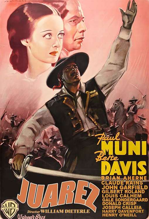 JUAREZ (1939) DIR William Dieterle SCR John Huston, Wolfgang Reinhardt, Æneas MacKenzie (toneelstuk “Juarez” [1925] van Franz Werfel; biografie “The Phanton Crown” [1934] van Bertita Harding) CAM Tony Gaudio ED Warren Low MUS Erich Wolfgang Korngold CAST Paul Muni, Bette Davis, Brian Aherne, Claude Rains, John Garfield (Porfirio Diaz), Louis Calhern, Gale Sondergaard, Donald Crisp, Joseph Calleia, Harry Davenport, Henry O’Neill, Montagu Love, John Miljan