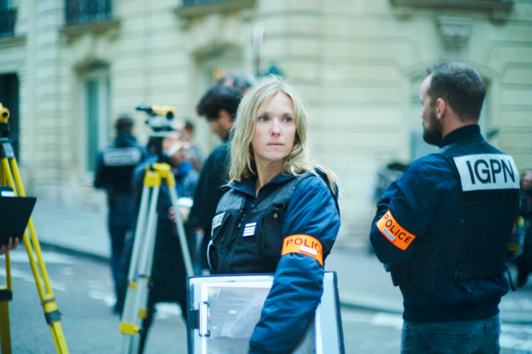 …echt? Wauw! [Schaterlach.] Wel, mijn production designers zijn zelden op de set. Ze doen al het werk vóór de opnamen, zoals het bouwen van de sets, of het vinden van locaties en die aanpassen indien nodig, of wat dan ook. Ik heb met twee production designers gewerkt; we bereiden alles voor en we zoeken geschikte locaties. Voor “Dossier 137” was Emmanuelle Duplay mijn production designer, en zij was zelden op de set omdat ze altijd de volgende set aan het voorbereiden was. Dus stel dat ik op de set zou doodvallen, zij zou het niet per se zijn [lacht], maar de eerste assistent-regisseur zou het kunnen overnemen, of Gilles Marchand, die zelf ook regisseur is. Maar het is wel een interessant verhaal [lacht]; het is ook best grappig dat hij dat zei.