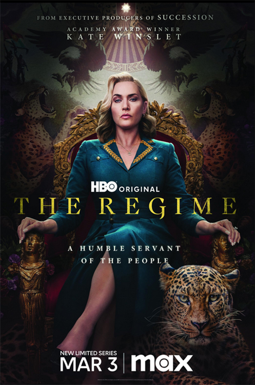 THE REGIME (2024) DIR Stephen Frears [3/6 episodes] PROD Seth Reiss EXEC PROD Stephen Frears, Kate Winslet, Tracey Seaward, Will Tracy, Frank Rich, Jessica Hobbs TELEPLAY Will Tracy, Sarah DeLappe, Seth Reiss, Gary Shteyngart, Jen Spyra, Juli Weiner CAM Alwin H. Küchler ED Peter Lambert, Paolo Pandolpho MUS Alexandre Desplat, Alex Heffes CAST Kate Winslet, Matthias Schoenaerts, Guillaume Gallienne, Danny Webb, Andrea Riseborough, Henry Goodman, David Bamber, Rory Keenan, Louie Mynett